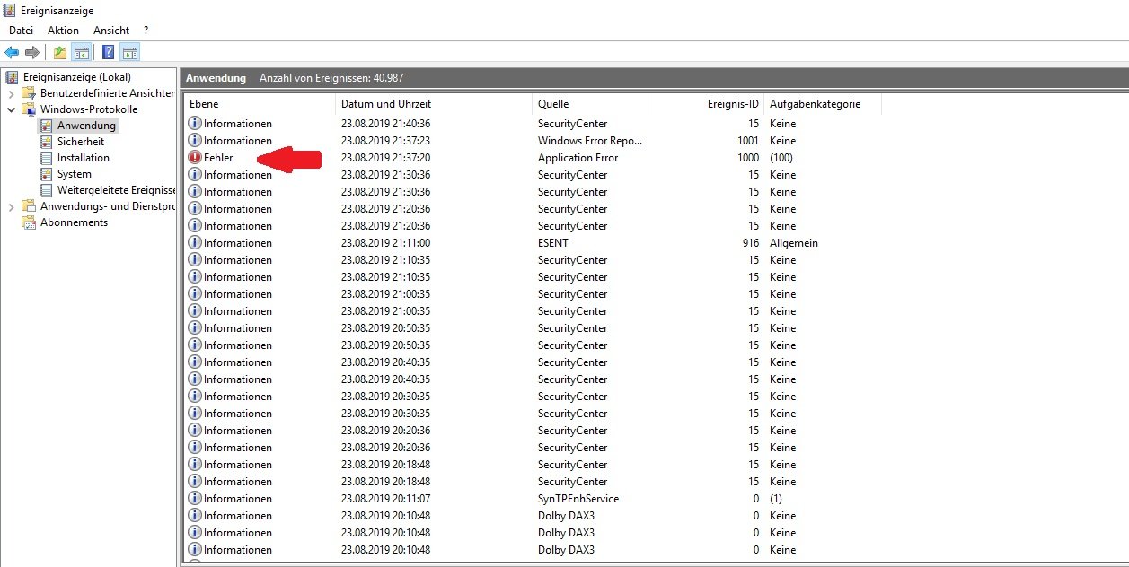 Welche der vielen Ereignis letztendlich tatsächlich relevant sind, hängt immer von verschiedenen Faktoren ab. Behalten Sie zudem auch immer die Spalte „Datum und Uhrzeit“ im Auge. Denn wenn Fehlermeldungen gleichzeitig mit dem Ausfall eines Programmes oder eines externen Gerätes (z.B. einem Router) einhergeht, kann das die Ermittlung der Ursache enorm beschleunigen.