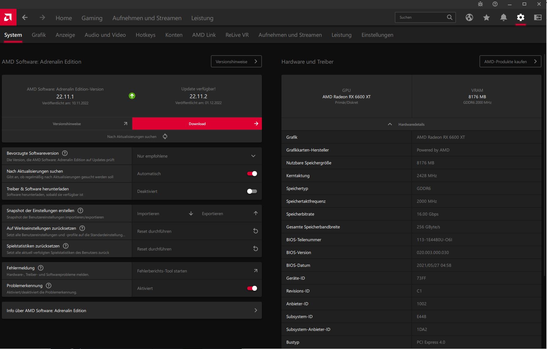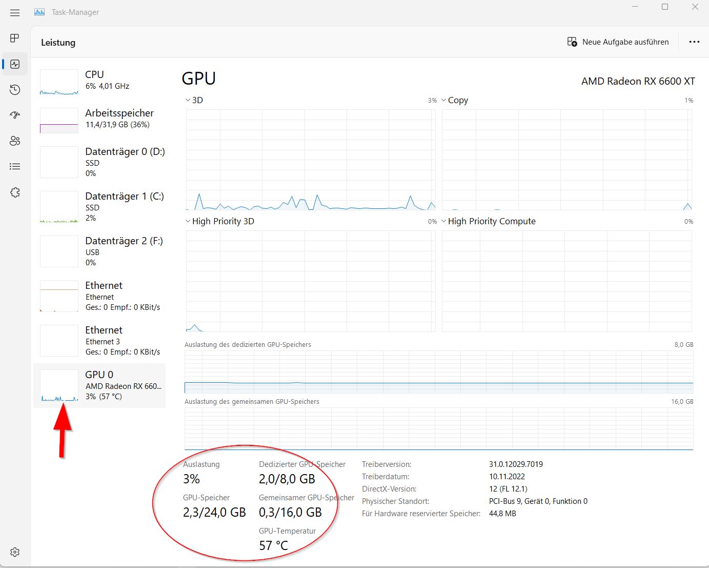 Die in Windows angezeigten Informationen sind nicht besonders aussagekräftig. Mehr Informationen bieten dagegen die AMD-Radeon Treiber-Software bzw. NVIDIA GeForce Experience. Beide Treiber-Suites zeigen Ihnen nicht nur die aktuelle Auslastung und die Treiberversion an, sondern auch viele Details zur verwendeten Grafikkarte.
