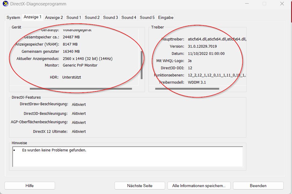 2.1. Weitere Infos vom DirectX-Diagnoseprogramm