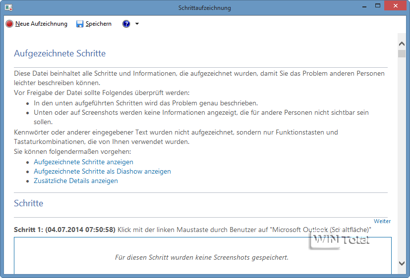 Windows 8.1 – Schrittaufzeichnung