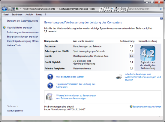 Leistungsinformationen und -tools (von Vista bis Windows 8.0)