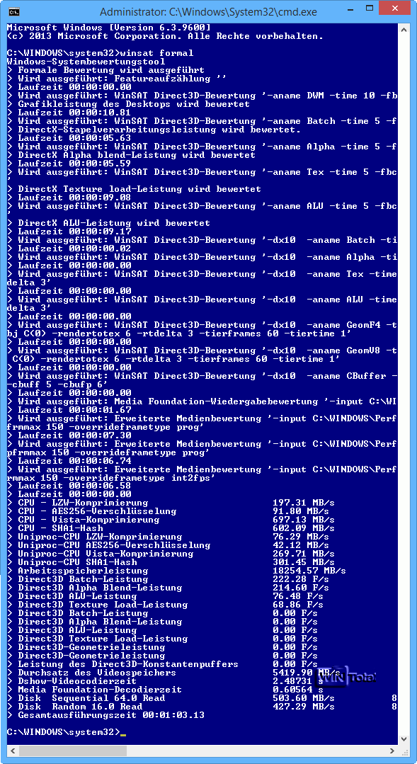 Die Leistungsbewertung kann aber auch direkt über die Eingabeaufforderung aufgerufen werden.