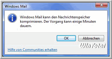 „Windows Mail kann den Nachrichtenspeicher komprimieren. Der Vorgang kann einige Minuten dauern“