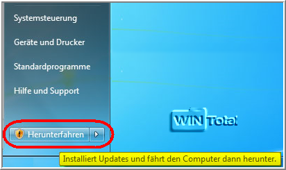 Wurden Updates heruntergeladen, ändert sich die Schaltfläche zum Ausschalten auf "Updates installieren und herunterfahren"