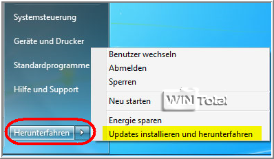 „Updates installieren und herunterfahren“ als eigene Schaltfläche