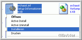 Unter C:\Windows zum Ordner inf navigieren. Im Ordner inf einen Rechtsklick auf die Datei srchasst.inf und auf „Installieren“ klicken. Dadurch werden die Dateien, die vom Such-Assistenten verwendet werden, neu installiert.