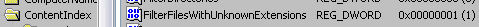 HKEY_LOCAL_MACHINE\SYSTEM\CurrentControlSet\Control\ContentIndex\FilterFilesWithUnknownExtensions