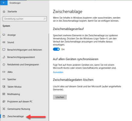 Sofern Sie für das Anmelden unter Windows 10 das Microsoft-Konto verwenden, wird die Zwischenablage zwischen allen Geräten synchronisiert, welche das Microsoft-Konto nutzen. Sie können damit Inhalte zwischen den Geräten auch über die Zwischenablage teilen. Für mobile Geräte wie Android und iOS will Microsoft in Kürze eine eigene App bereitstellen, um die Inhalte auch dort nutzen zu können.