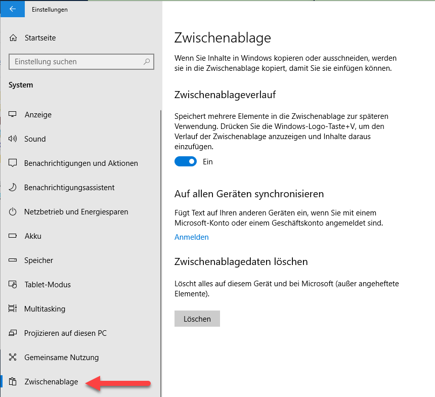 1. Windows 10 speichert den Verlauf der Zwischenablage seit Version 1809