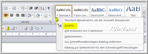 Öffnen Sie Word, gehen Sie in der Symbolleiste per Rechtsklick auf AaBbCcDd Standard und klicken Sie dann auf Ändern.