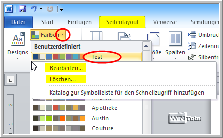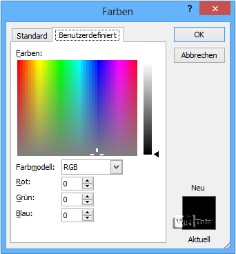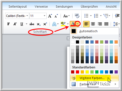 Neben den Standardfarben der Schrift, die Word bei der Zeichenformatierung anbietet, gibt es noch die benutzerdefinierten Farben in der Palette. Hat man sich seine Farben zusammengestellt, kann man diese im Dokument verwenden, leider aber nicht dauerhaft speichern für das nächste Dokument.