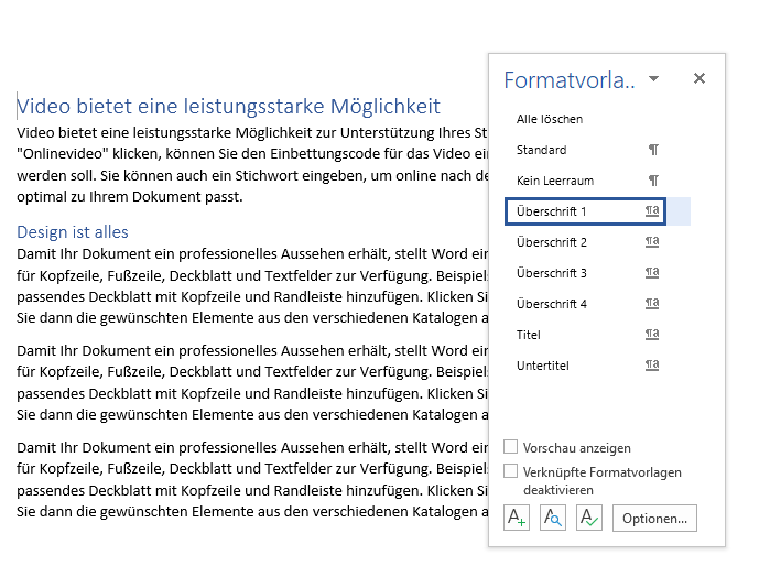 - Damit Word die Überschriften erkennt, müssen diese mit der richtigen Formatvorlage formatiert sein.
