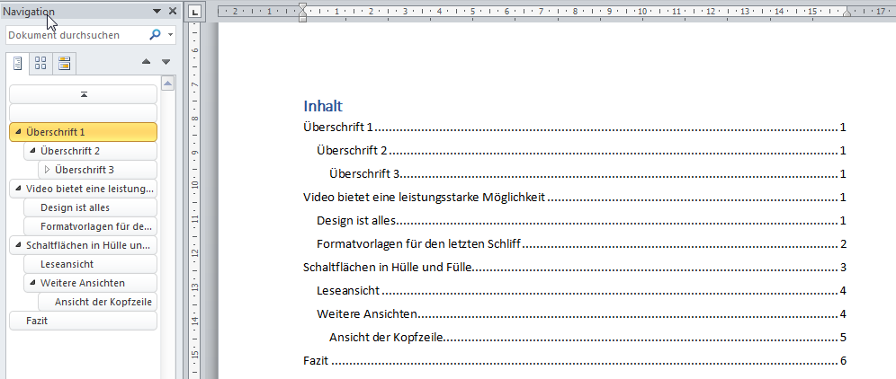 Word nutzt dann diese Gliederung für das Inhaltsverzeichnis und blendet Unterüberschriften auch als solche ein.