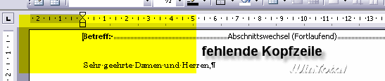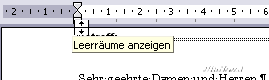 Normalerweise zeigt Word in der Layoutansicht auch die Kopf- und Fußzeilen an und beginnt bei erstellten Vorlagen an der ersten Stelle unterhalb der Kopfzeile, Eingaben anzunehmen.