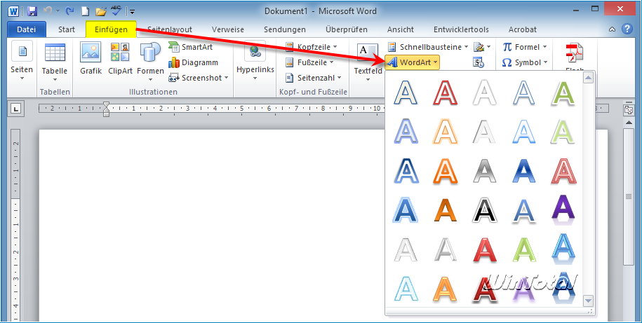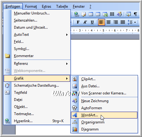 Word 2003 – Menü Einfügen – Grafik – WordArt