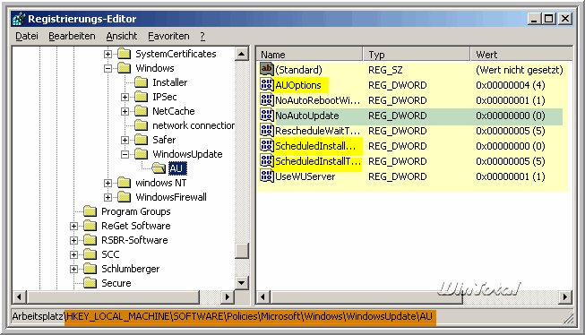 sollte der Wert NoAutoUpdate entweder nicht vorhanden oder mit dem Wert 0 versehen sein.
