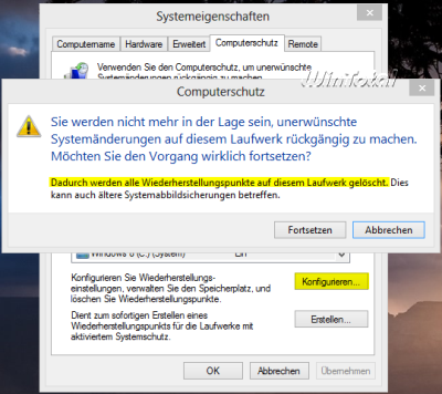 Tipp: Alle Systemwiederherstellungspunkte bis auf den letzten Punkt löschen