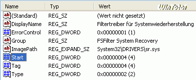 Hierzu ändert man hier den Wert Start auf 4 zum Deaktivieren oder „0“ zum erneuten Aktivieren.