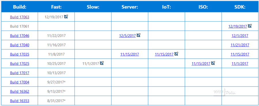 Unter dem Namen FLIGHT HUB hat Microsoft ein Dashboard online gestellt, welches einen schnellen Überblick über die Vorabversionen gibt, die im Rahmen des Windows-Insider-Programms verteilt werden. Die Tabelle zeigt die Build-Nummer mit einem Feature-Text dahinter sowie das Datum von Fast- und Slow-Release.