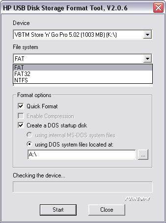 Mit dem USB Disk Storage Format Tool von HP können Sie den Stick als Festplatte formatieren. Das Tool schreibt einen MBR, Partitionstabelle und Partition. Sie können auch das Dateisystem (FAT, FAT32 und NTFS) wählen. Als Bootmedium ist NTFS im Regelfall aber untauglich. Sofern Sie über eine bootfähige DOS-Diskette verfügen, kann das Programm direkt die Startdateien auf den Stick zum Booten übertragen. Achtung: Damit werden alle Daten auf dem Stick gelöscht.