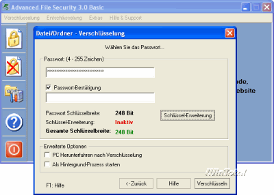 Alternativ können Sie auch nur sensible Dateien gezielt verschlüsseln. Zu diesem Zweck eignen sich Programme wie Advanced File Security oder Challenger, welche direkt auf den Stick kopiert und von dort zum Ver- oder Entschlüsseln gestartet werden können.