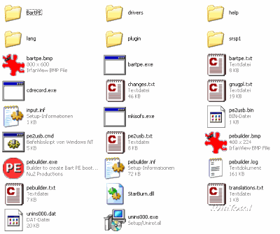 Nach dem Entpacken kopieren Sie die Dateien setupldr.bin und ramdisk.sy_ in einen Unterordner im Programmverzeichnis von Barts PE mit dem Namen srsp1, den Sie erst noch erstellen müssen.