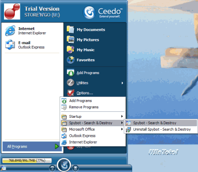 Ceedo Personal installiert sich auch auf einem USB-Stick. Die Software dient als Startcenter für Programme, welche sich über die Webseite des Herstellers herunterladen und installieren lassen. Im Vergleich zu U3 ist die Auswahl der Programme wesentlich umfangreicher. Auch bei Ceedo kann man derzeit keine eigenen Programme mit in das Startmenü aufnehmen.