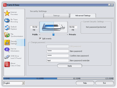 Die Aufteilung in einen öffentlichen und privaten Bereich funktioniert nur bei USB-Sticks mit bestimmten Controllertypen (einsehbar unter Device Information). |