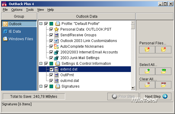 OutBack Plus zum Transfer von Maileinstellungen zwischen 2 Rechnern für Outlook |