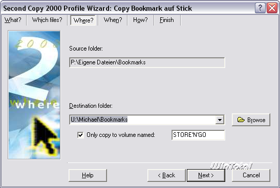 Mit dem Assistenten geben Sie vor, welche Ordner zwischen dem Hauptrechner und dem Stick synchronisiert werden sollen. Second Copy unterstützt dabei auch den Namen des USB-Sticks.
