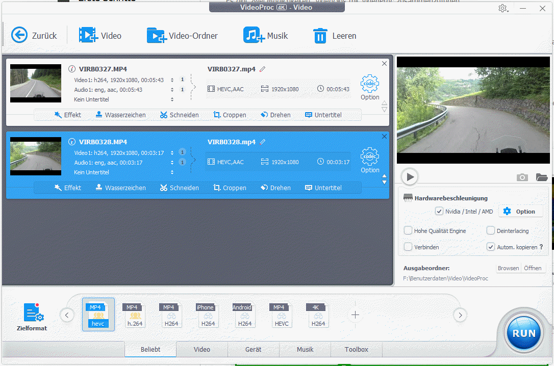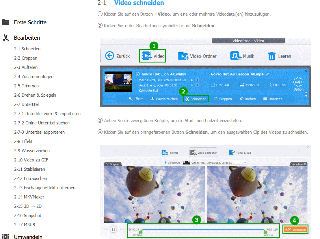 - 1. Einfache Videobearbeitung mit VideoProc 4K