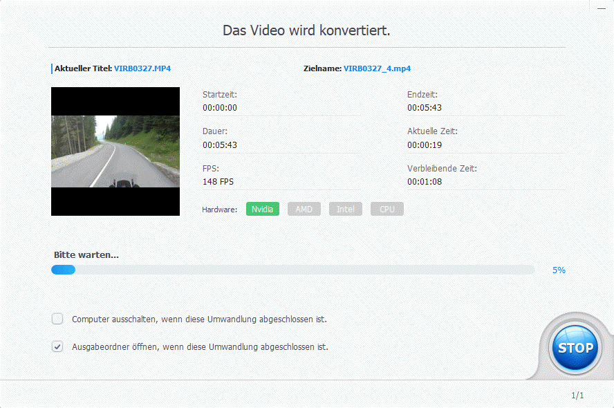 Nach einem Klick auf den Run-Button wird das oder die Videos dann transcodiert und im Ausgabeordner abgespeichert.