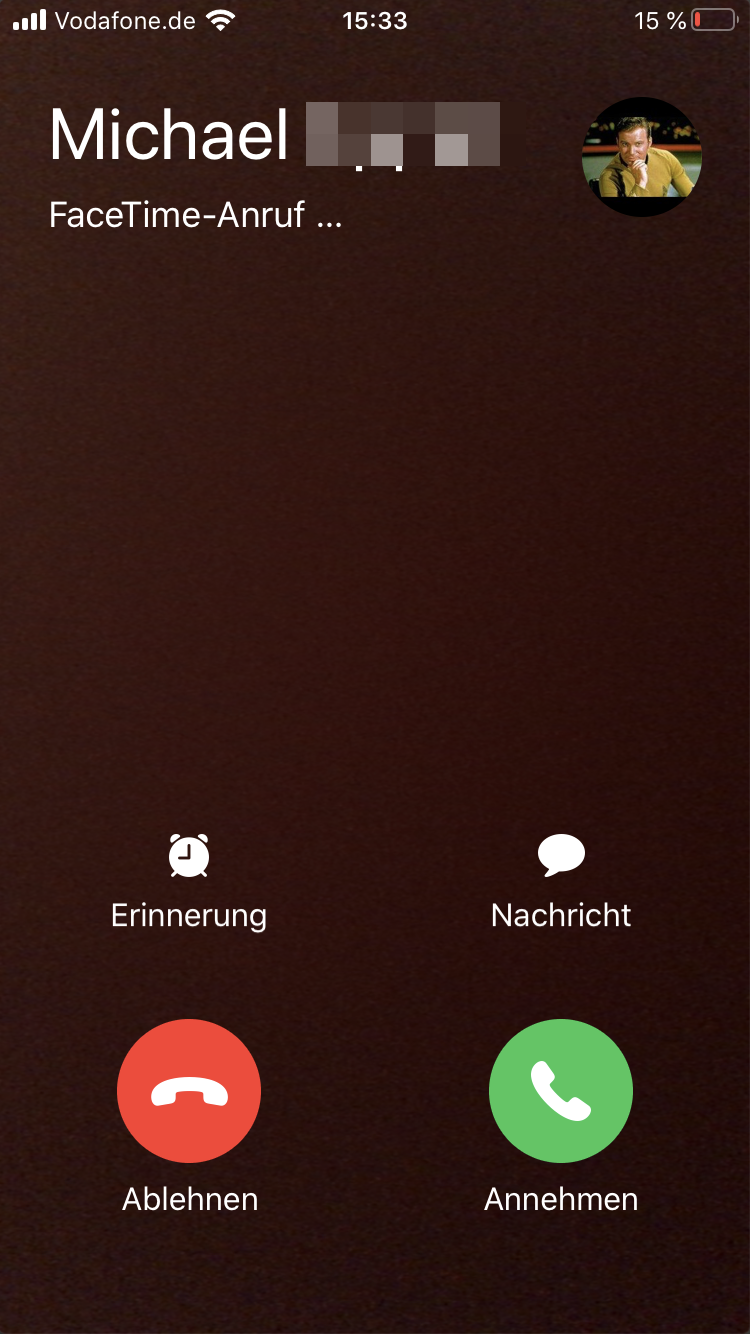 Der Empfänger des Anrufs kann den Anruf annehmen oder ablehnen, auf einem iPhone auch eine Nachricht als Antwort schicken.