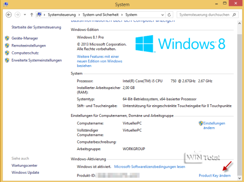 Danach führen Sie einen Neustart durch. Windows 8 ist dann aktiviert. Sie müssen online verbunden sein und der Generic-Key muss natürlich über PRODUKT-KEY ÄNDERN bei der Aktivierung berichtigt werden.