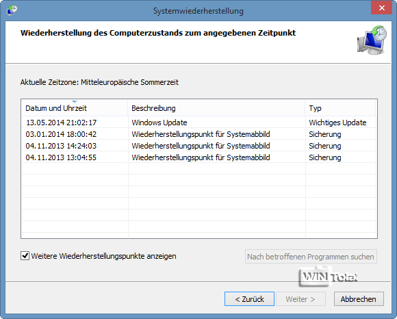 Vorausgesetzt wird, dass Sie die Systemwiederherstellung nicht abgeschaltet haben.