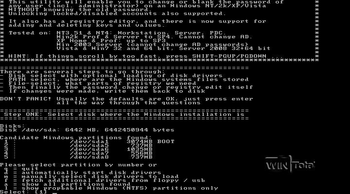 Offline NT Password & Registry Editor