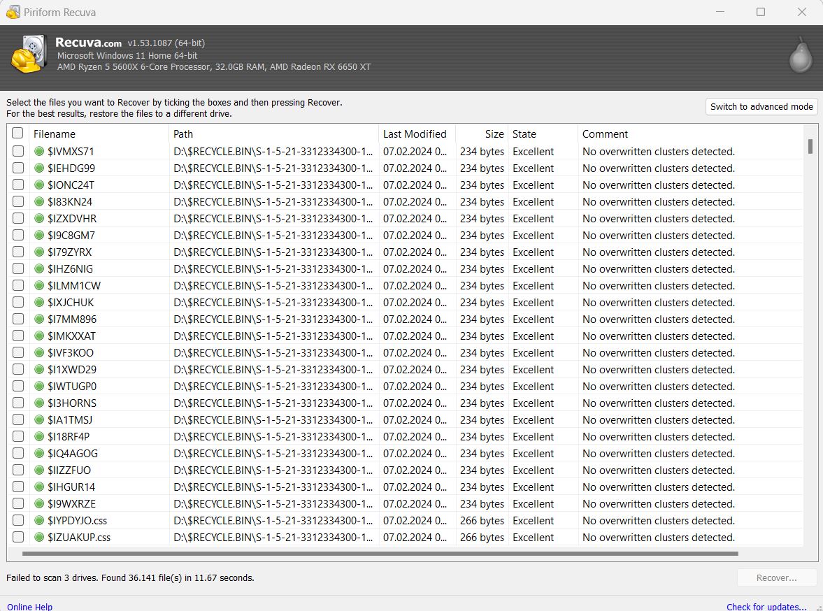 Wenn Sie in Windows eine Datei löschen, wird nur der Eintrag in der Master File Table gelöscht, der belegte Platz auf dem Datenträger wird also wieder frei. Die Datei selbst ist aber noch vorhanden und kann mit etwas Glück mit speziellen Datenrettungstools wie Recuva wiederhergestellt werden. Das klappt aber nicht immer, da Windows ständig auf den Datenträger schreibt und der als „frei“ markierte Platz schnell wieder von temporären Dateien oder Downloads überschrieben wird, so dass die gelöschte Datei nicht mehr vollständig wiederhergestellt werden kann.