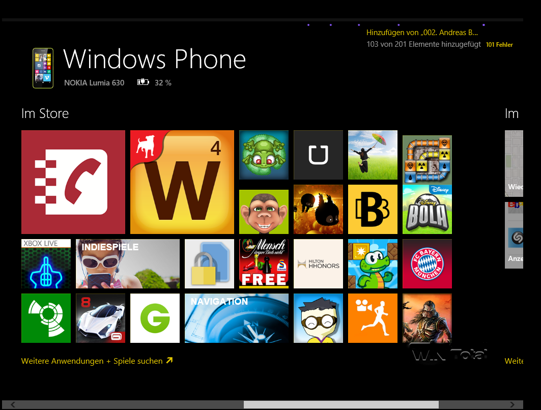 Für die Windows-UI-Oberfläche bietet Microsoft mit der App Windows Phone auch eine Lösung, welche touch-tauglich ist und sich auch auf ARM-Tablets installieren lässt. Unter Windows 8.1 wird die App nach der ersten Verbindung mit dem PC selbstständig aus dem Store heruntergeladen.
